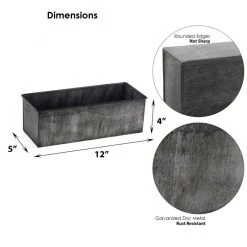 Vase Market Zinc Rectangle Galvanized Planter Iron Grey Finish. H-4″ Open-12″x5″ (Multiple Packing)