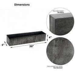 Vase Market Zinc Rectangle Planter Iron Grey Finish H-4″ Open-5″ X 24″ (Multiple Packing)