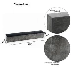 Vase Market Zinc Rectangle Planter Iron Grey Finish H-4″ Open-5″ X 28″ (Multiple Packing)