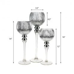 Vase Market Mercury Silver Wavy Etched Glass Candle Holder, Set Of 3 (12″, 14″, 16″)
