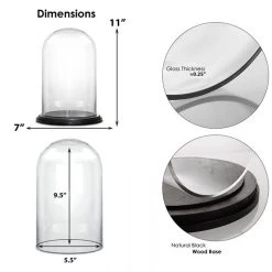 Vase Market Glass Dome H-6.5′ D-6.9″ Cloche Bell Jar Terrarium With Base (Multiple Packing)