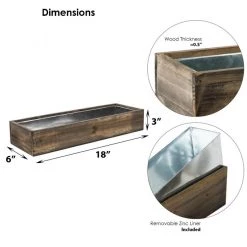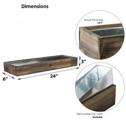 Vase Market Wood Rectangle Long Planter Box W/ Zinc Liner Natural H-6″ Open-24″x6″