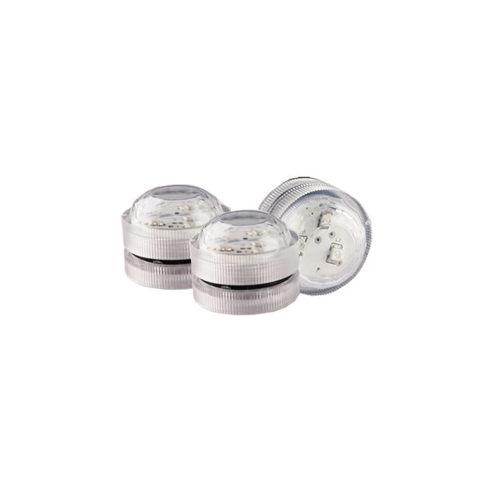 Submersible LED Lights (Set of 6 pcs), 3 LEDs, Clear casing, battery operated (batteries included), Submersible.