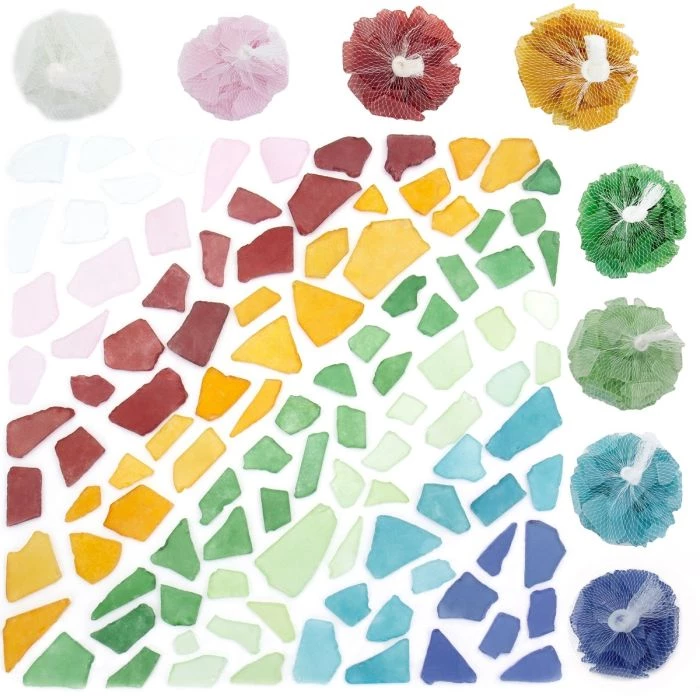 CYS EXCEL Sea Glass Assorted Mix Rainbow Colors | Multiple Choices Crushed Glass Vase Filler | Aquarium Nautical Décor for Art Crafts Flat Frosted Dyed Color Stone.