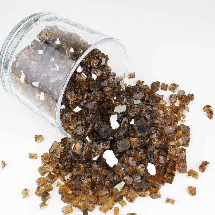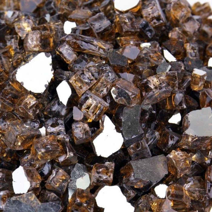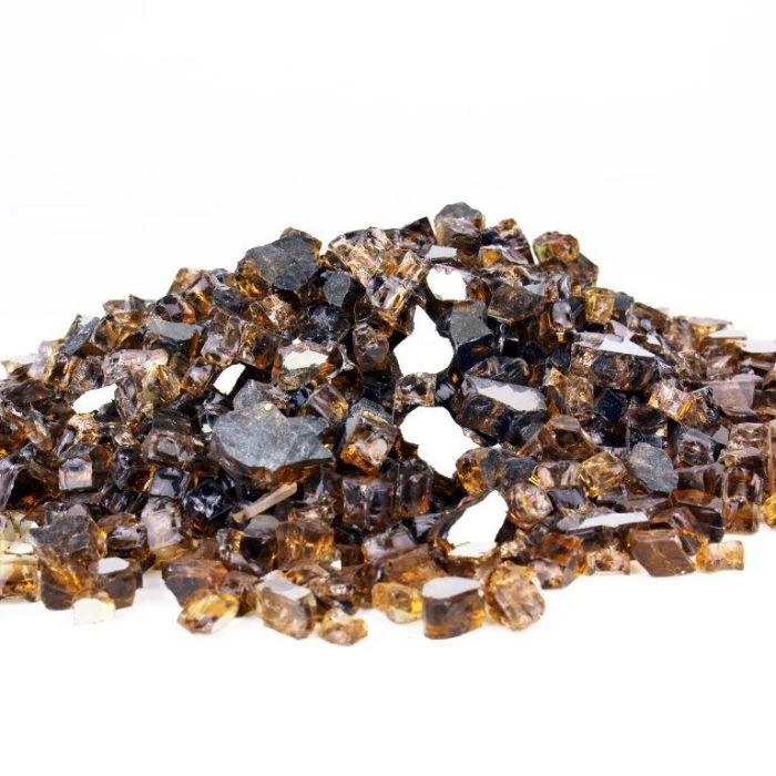 Fire Pit Glass Fire Glass 1/2″ Reflective Golden Tea, 40 lbs