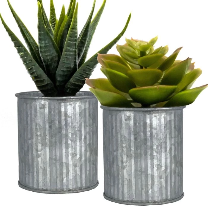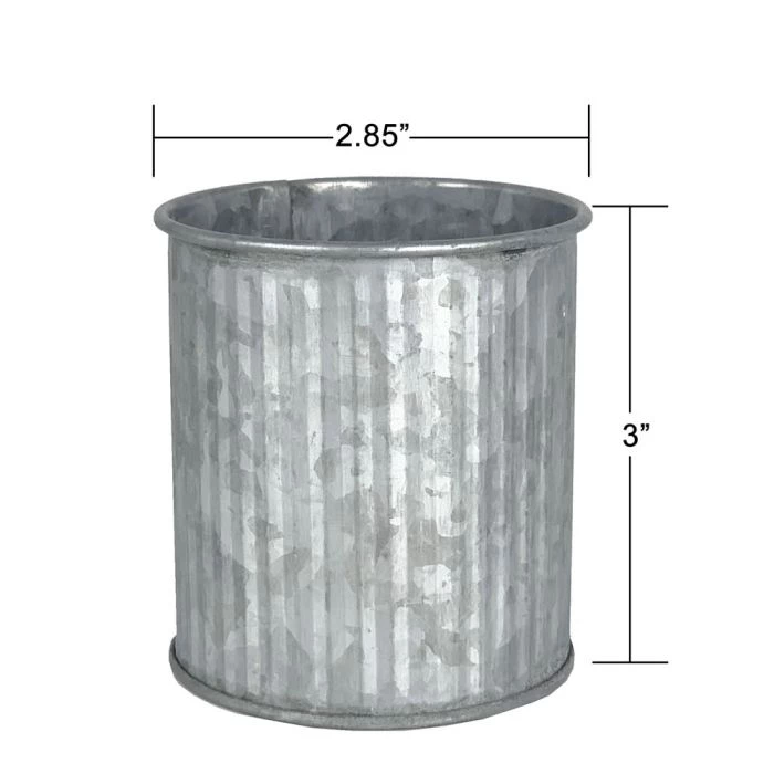This Ridged Rustic Aged Finish Zinc Planter is distressed to emulate the neglected look of found objects in farmhouses. Rust naturally occurs when galvanized zinc containers are weathered by rain. This type of container is also called a metal Norah vase or corrugated zinc pot. Dreaming of the French countryside? You don’t need to fly to France to get inspired! This aged finish zinc pot can help you create that shabby chic style you’ve been dreaming of. Great for succulents or as decor planters for your budding plants! The perfect pot size for party favors or bridal shower gifts!