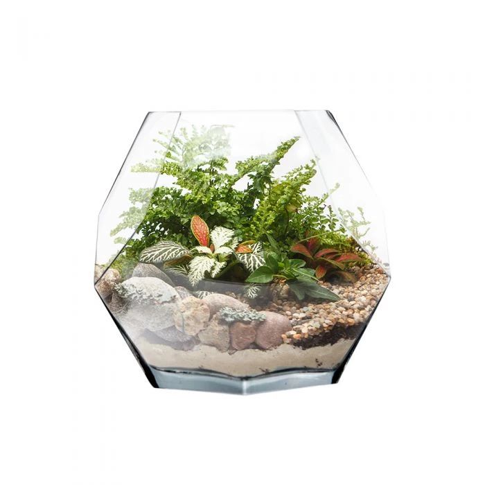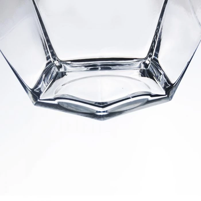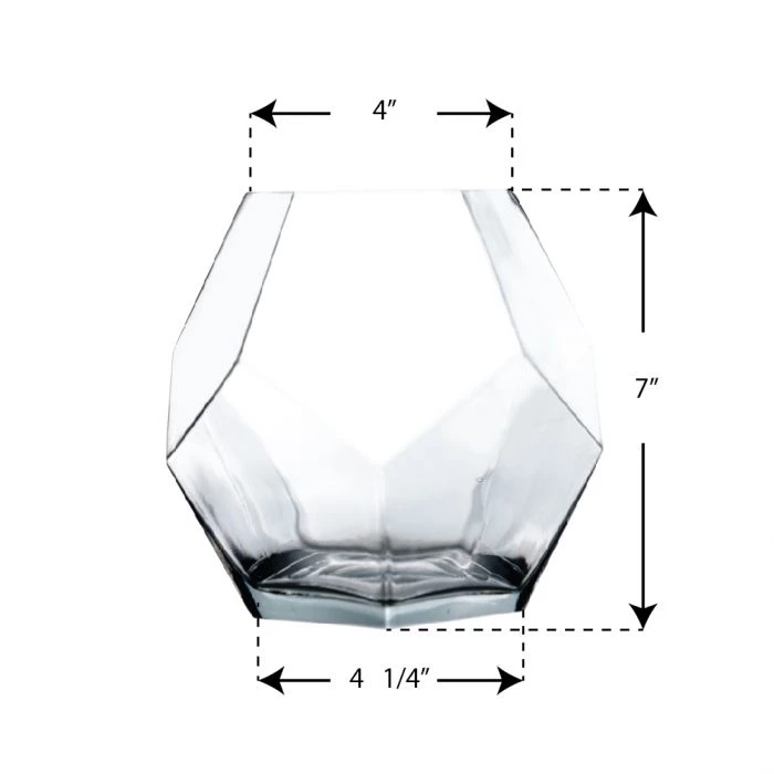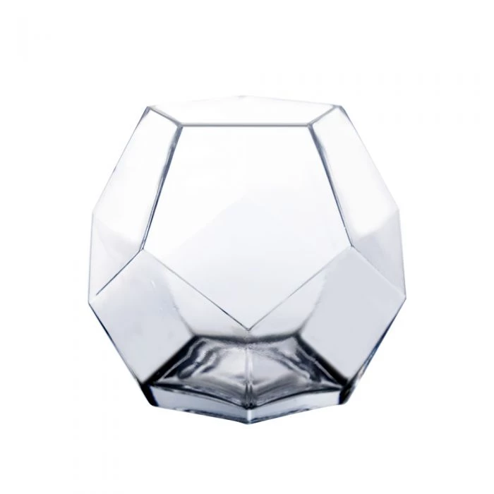 These eclectic, honeycomb-like vases are part of our special collection of table-top geometric glass vases. They are excellent for minimalist décor and modern homes, varying in shape and size; from tall and majestic to short and serene. These trendy and stylish multi-faceted pieces have a dignified Nordic-vintage feel to them and are suitable for unique floral, candle, or succulent terrarium displays. Made from heavy, handcrafted, crystal clear glass.