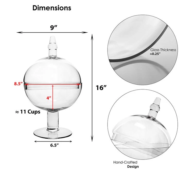 This Pedestal Apothecary Globe Jar sure screams fun for any party that you’re planning. Use it alone as a centerpiece focal point or in multiples with our other jars for the candy buffet table. Utilize it without the lid to instantly turn it into a jumbo martini glass for your big kid parties’ decor.