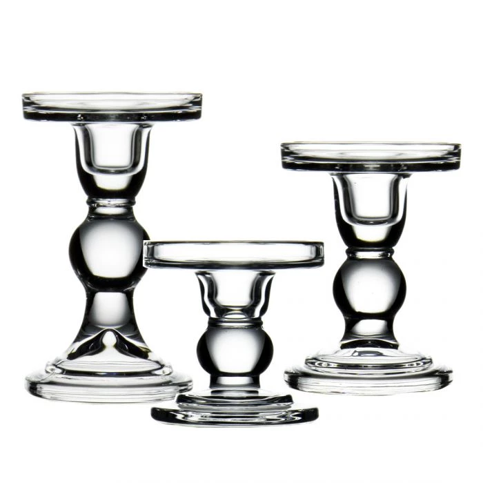 This series of taper/pillar candle holders are our staffs’ favorite pick. The stem featuring a single round bubble, decorate with brilliant simplicity is what the designers and brides cannot resist. This clear glass pillar candle holder is perfect for displaying your pillar candle (D-3″ or smaller) and it’s ideal for both wick and LED candles. Dual-purpose candle holders can be used for pillar or taper candles. You will find a slight lip and an indented center for potential wax spillage. This piece is great for weddings, restaurants, and churches use.