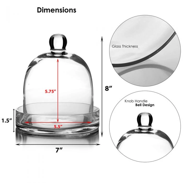 Packing: Pack of 2 pcs (2 pcs cloches and 2 pcs Glass Trays) and 4 pcs (4 pcs cloches and 4 pcs Glass Trays) | Glass tray included
