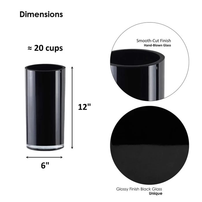 The 6 inches diameter cylinder vases are very popular vases for fresh floral arrangements as well as silk floral designs. Garden centers and nurseries use these vases for lucky bamboo, succulents, tulips, and roses arrangements. It works great for dried arrangements such as glass flat marbles, stones, pebbles, potpourri, etc. 6 inches glass cylinder vases are bigger than the 5 inches, it does create a Grand and Elegant look to any event.