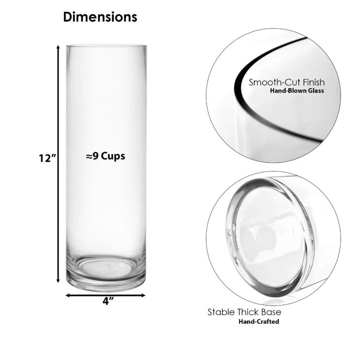 Our glass cylinder vases are 100% hand blown and made. The top rim is cut to perfection, instead of having the cheap-looking machine-made glass cylinder vase with the sealed rim on top. The cylinder vases feature good glass wall thickness to ensure durability.
