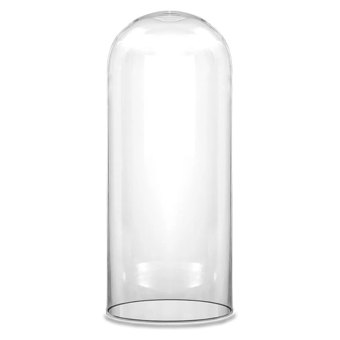 Glass cloches are also known as glass domes, which were originally created to protect seedlings or delicate flowers from adverse elements. They have since been widely used as plant terrarium containers or as decadent dessert display cover. One may incorporate this cloche with a tree bark disc as the tray for rustic chic or farmhouse wedding themes. More and more wedding centerpieces are seen using cloche covers as part of the table setting decor. This clear glass cloche is the perfect pick to pair with different types of cake stands or trays.