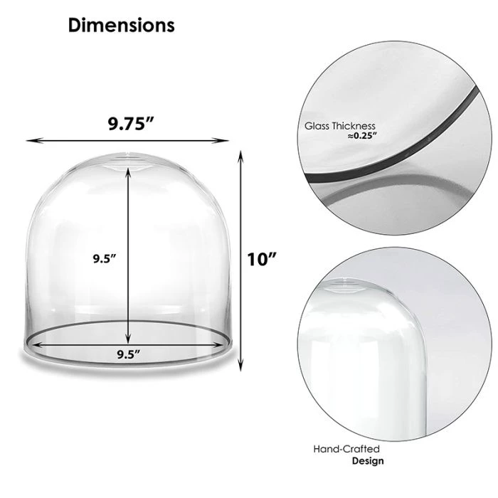 Glass cloches are also known as glass domes, which were originally created to protect seedlings or delicate flowers from adverse elements. They have since been widely used as plant terrarium containers or as decadent dessert display covers. The tray is not included.