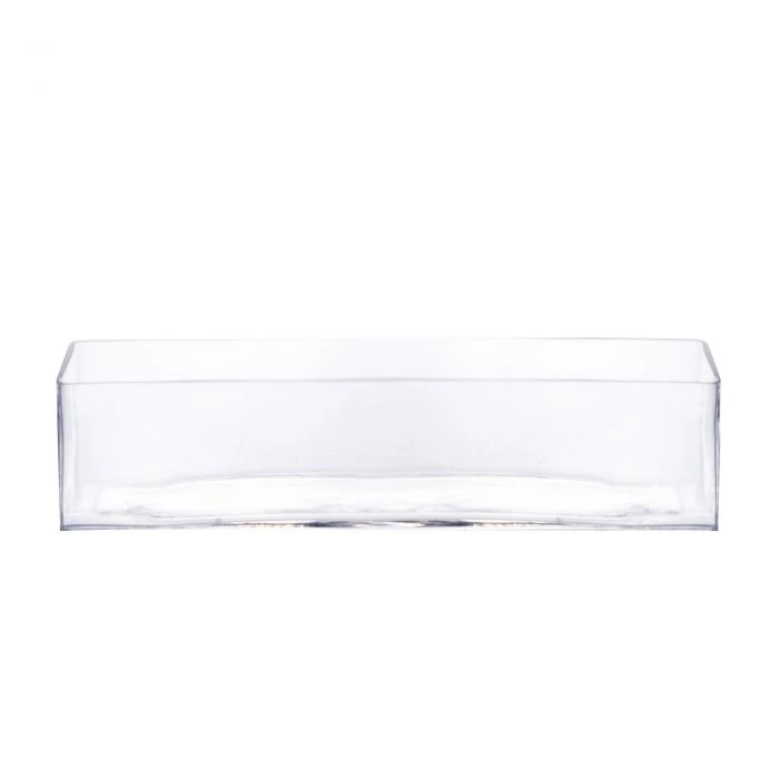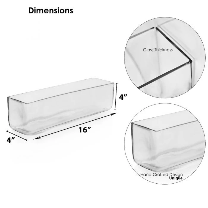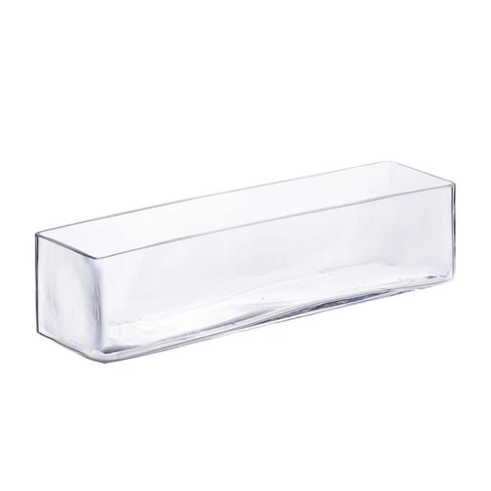 This lovely rectangle vase is solid and sleek. Perfect to use to display variety and flower arrangements. The rectangular-based vases all stand at 4 inches tall with specified rectangle dimensions as shown. This design is relatively narrow in its width and the suggestion is to show arrays of short-stemmed floral designs. The shallowness of these vases will permit showing different fillings such as colored marbles, stones, river rocks, or colored gels to add to the brilliance of the arrangement.