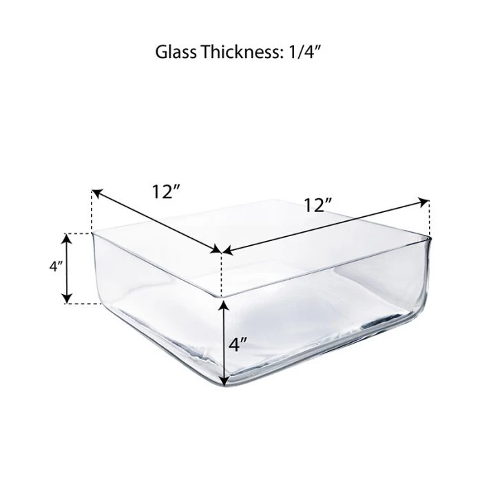 QUALITY: This wide-opening square vase is crafted of high-quality glass to maximize content visibility. Each low vase features thick glass walls and a weighted base to ensure durability.