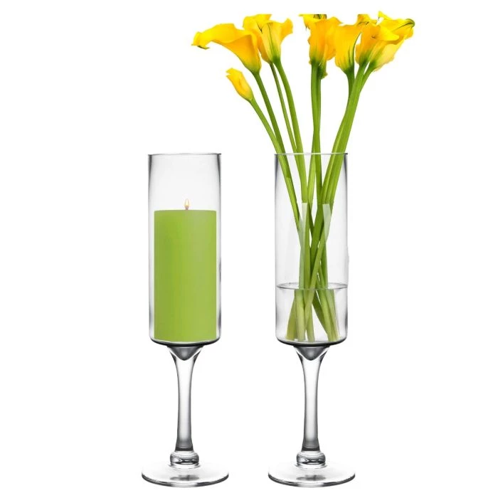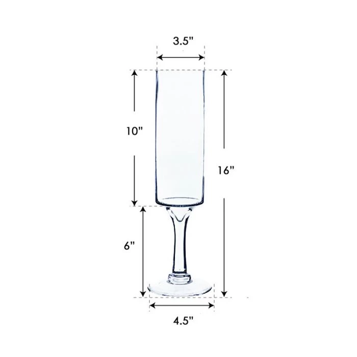 This series of contemporary clear glass candleholders is tall and slender in design. The design has a straight circular cylinder silhouette with a proportioned footing. The clear glass design allows any candle color to gleam in its surroundings. Whether you are planning a wedding, a holiday party, or an anniversary celebration, these darling candleholders will illuminate your event with class. A popular design for these elegant candleholders is to arrange an array of candles in varying heights for a dynamic layout. The candleholders are available in 3 sizes ranging from opening diameters of 4”, 5”, and 6”. The total height of the holder is identified by “/” after each product ID, e.g. The open flame from the candle would burn within the cylinder.