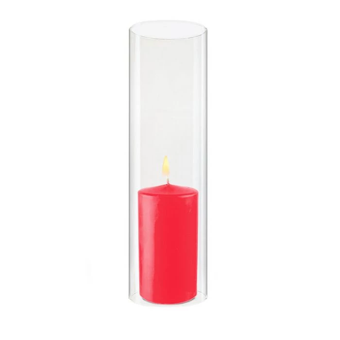 – Bottomless cylindrical glass shield for open flame candles