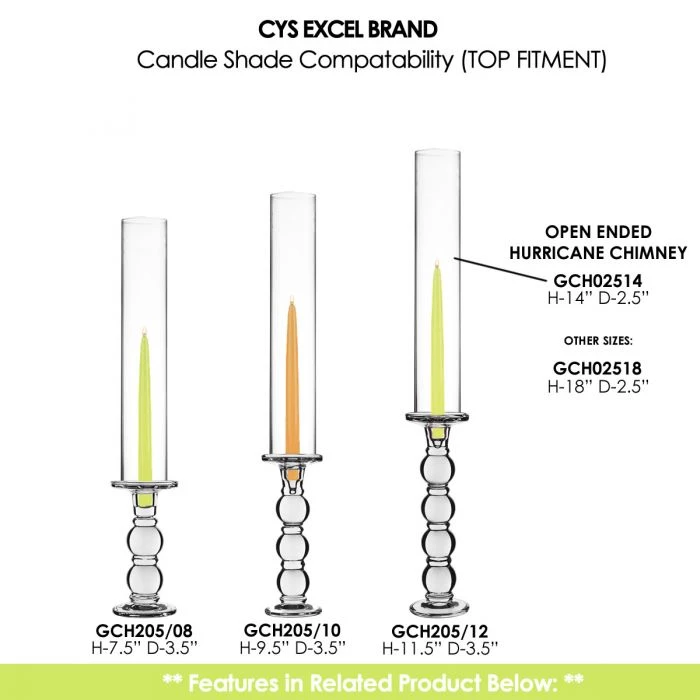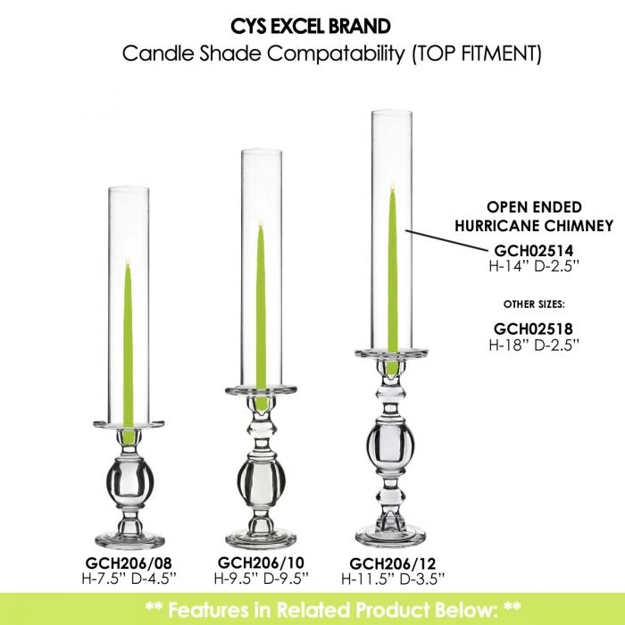 Open-ended candle holders are also known as Glass Hurricane Chimney Tubes for pillar candles, candlesticks, or taper candles. This candle shield does not have a bottom. A contemporary design hurricane candle holder makes an impressive display in any setting, at an event or home. These glass tubes fit over your candle holders with a taper or pillar candle inside to keep the flame lit without the worry of the flame getting blown out.
