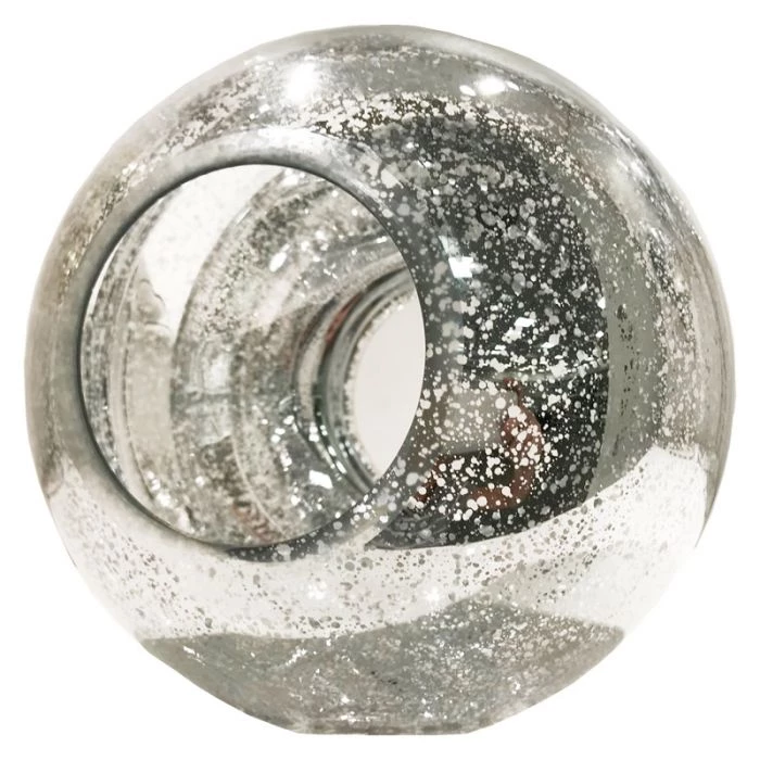 Open Ended Speckled Mercury Silver Orb with Speckled Silver. H- 7″ D- 8″
