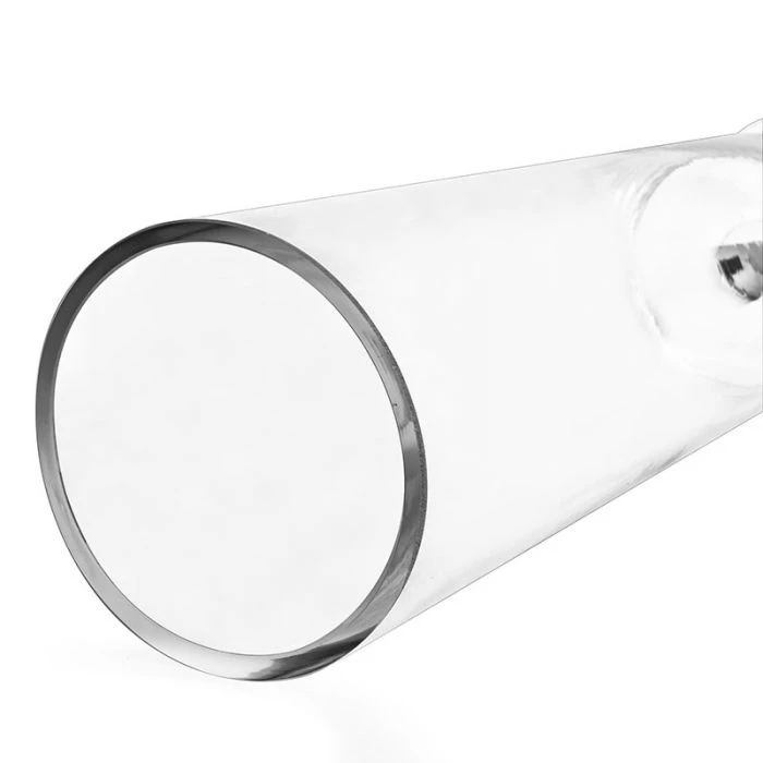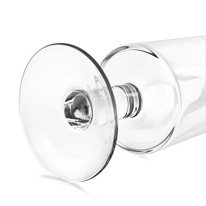 This series of contemporary clear glass candle holders is tall and slender in design. The design has a straight circular cylinder silhouette with a proportioned footing. The clear glass design allows any candle color to gleam in its surroundings. Whether you are planning a wedding, a holiday party, or an anniversary celebration, these darling candle holders will illuminate your event with class. A popular design for these elegant candle holders is to arrange an array of candles in varying heights for a dynamic layout.