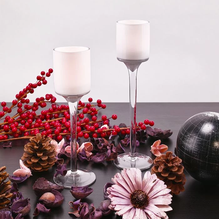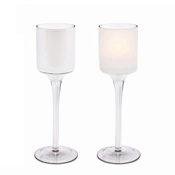 This 8-inch white long stem candle holder elegant candle holder is our staff’s favorite pick. The accentuated stem embodies an elegant silhouette that designers and brides cannot resist. Its slender dimensions make it modern and graceful when displayed on its own. It can hold votive and tea light candles. Great for indoor and outdoor wedding centerpieces, bridal showers, and other events. These candleholders are often seen arranged together in ascending order or in alternating heights for a dynamic design.