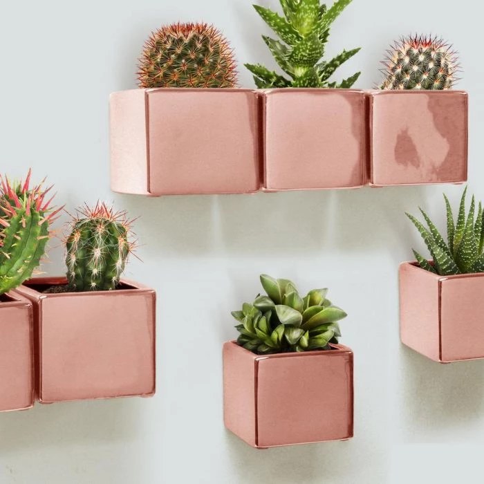 Wall Hanging Rose Gold Cube Planters. H-5″