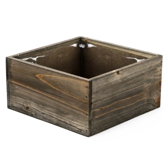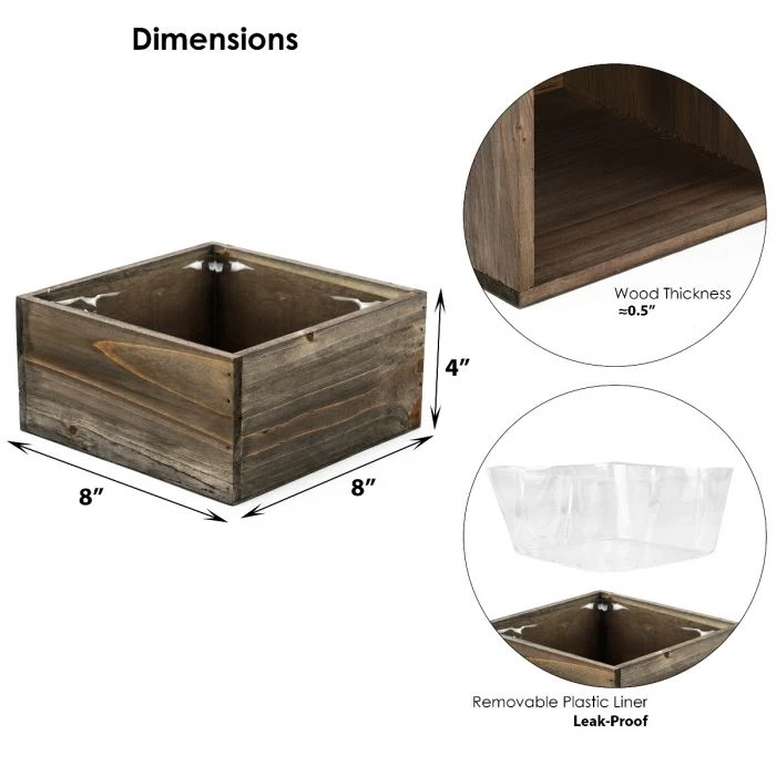 This Square natural wood garden planter is great for your garden and has a rustic charm. Plastic Liner is included for your convenience. Great for indoor and outdoor gardening. Create a rustic theme for your wedding, bridal shower, or party. Wood planter box, either in the shape of cube, square and rectangular has been widely used recently. Wood planter is the most appropriate container to be used on a green corner (patio, deck, indoor green section, countertop, bookshelf). It instantly creates a warmth and coziness feel.