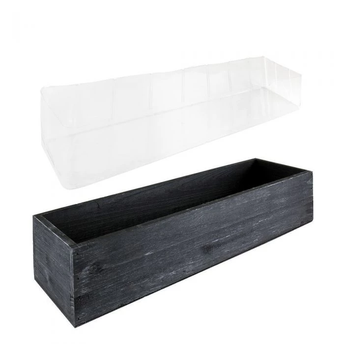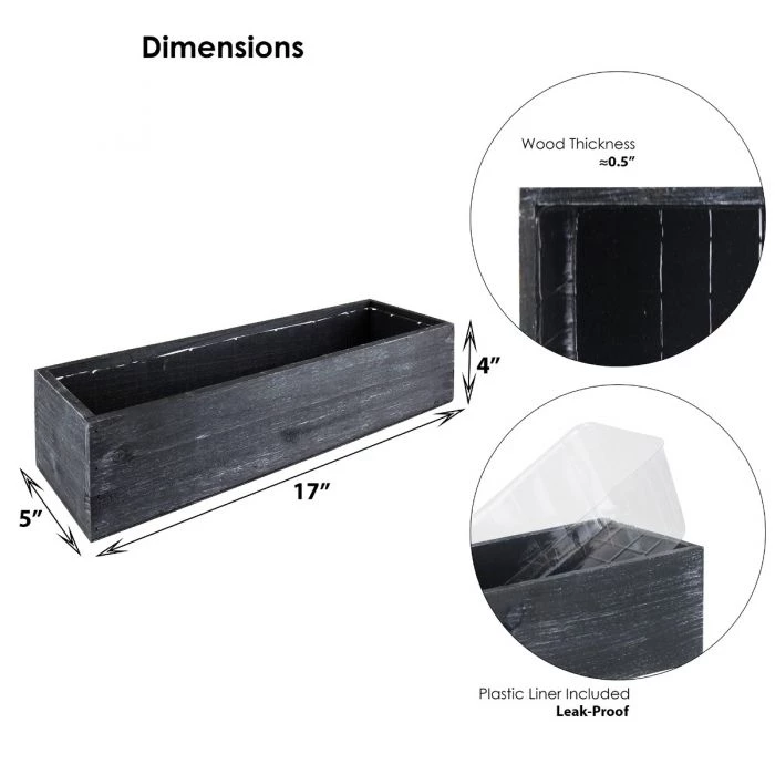 This rustic rectangular wood garden planter is great for your garden and has a rustic charm. The watertight Plastic Liner is included for your convenience. Great for indoor and outdoor gardening. Create a rustic theme for your wedding, bridal shower, or party.
