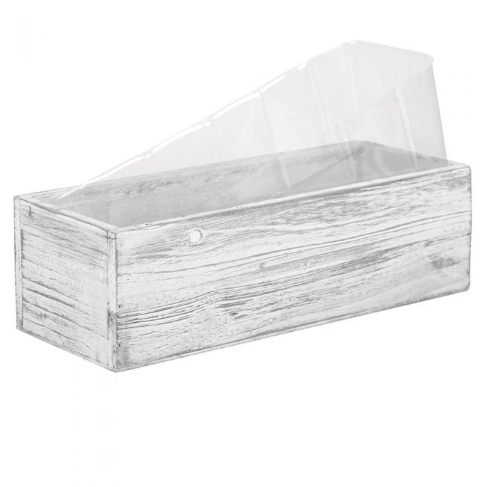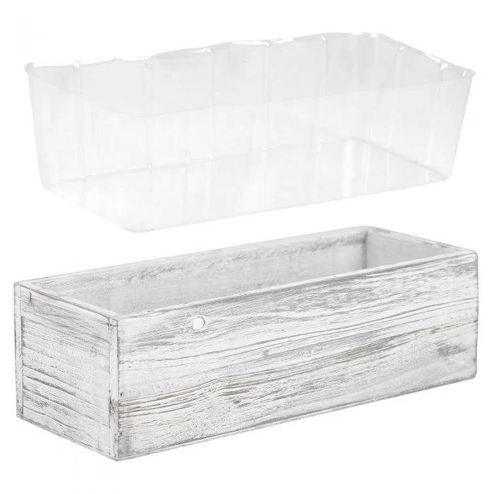 This rustic rectangular wood garden planter is great for your garden and has a rustic charm. The watertight Plastic Liner is included for your convenience. Great for indoor and outdoor gardening. Create a rustic theme for your wedding, bridal shower, or party.