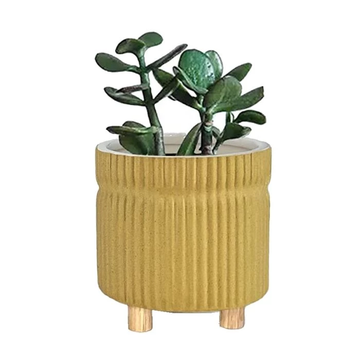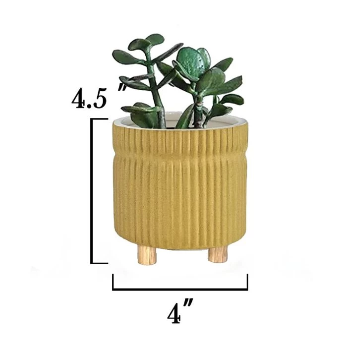Vase Market Yellow Ribbed Ceramic Tripod Planter Pot H-4.5″ D-4″ (Pack Of 24)