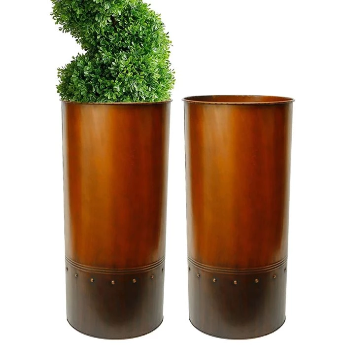 This stunning copper look finished round cylinder planter is a perfect piece for farmhouse home decor. The planter is also the perfect accent for any room in your house. The copper-washed color finish will enrich the beauty of your interior design, especially the farmhouse-looking decor.