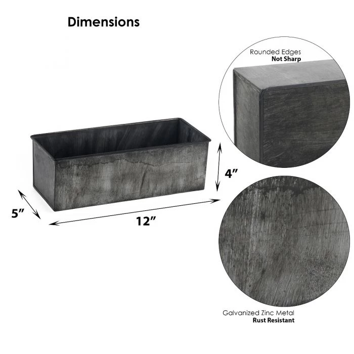 UNIQUE: This Rustic Gunmetal Aged Finish Zinc Trough Planter Window Box is hand painted distressed to emulate the neglected look of found objects in farmhouses. Rust naturally occurs when galvanized zinc containers are weathered by rain. This aged finish zinc pot can help you create that shabby chic style you’ve been dreaming of. Made of Steel with Zinc Finished